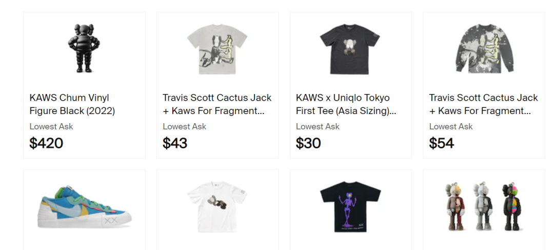 以下是KAWS的官方售賣產品,除了手辦玩偶之外,還包括各類印制服飾。