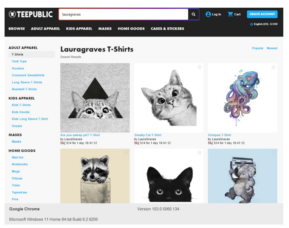 她的插畫作品也應用在衣服,口罩及各種家居產品上。