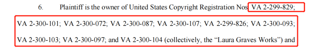 品牌權利人LAURA GRAVES最新案件在2022年8月8號發起,案件編號22-cv-4147 。