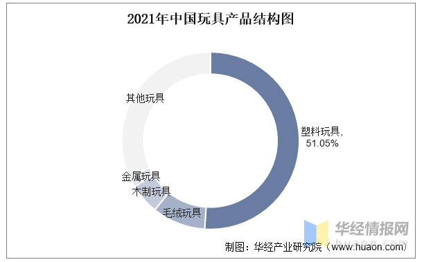 我國是全球最大的玩具制造國,在世界玩具市場上占有舉足輕重的地位。從材質(zhì)上看,塑料玩具是我國玩具市場第一大細(xì)分品類,2021年塑料玩具的市場份額約為51.05%。